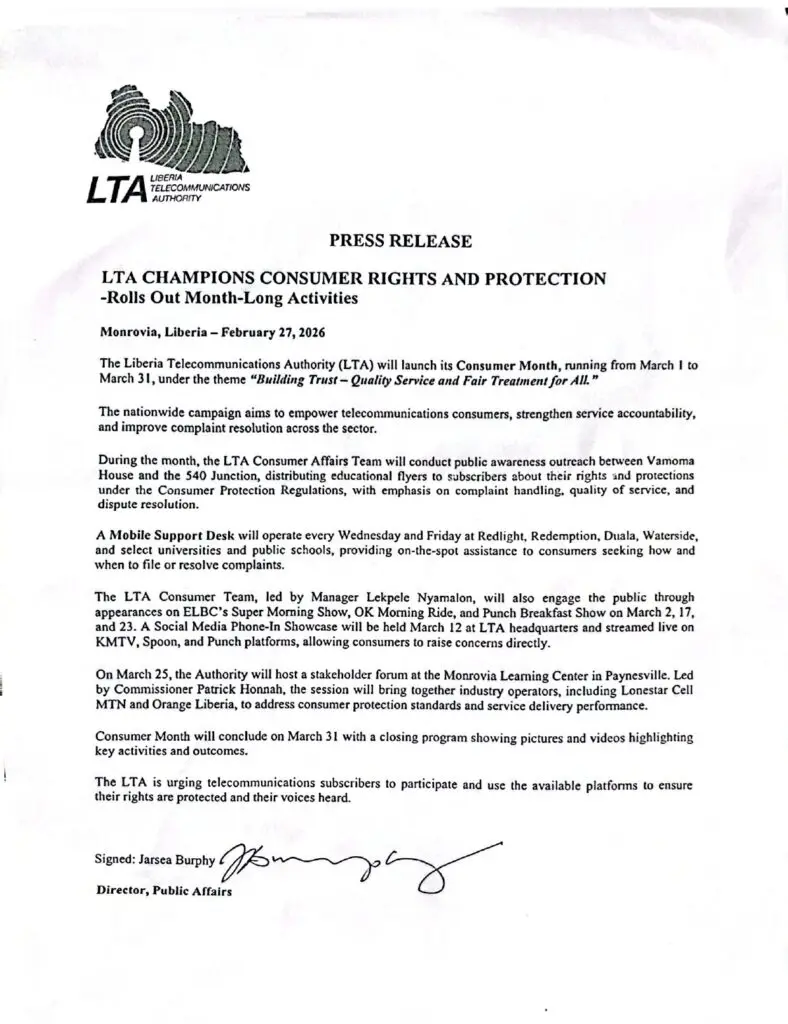 LTA Suspends Starcell International Liberia’s Telecommunications Licenseand Spectrum Authorization