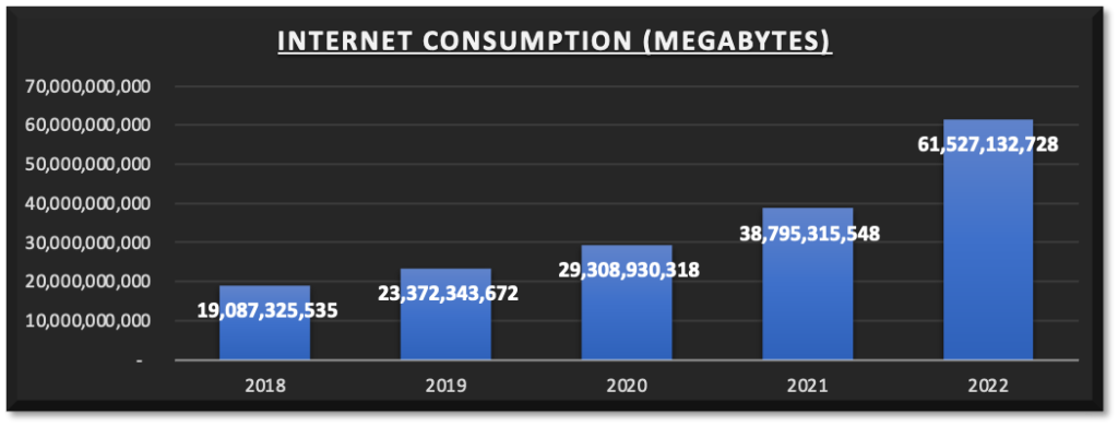 Year-on-year incremental growth in the use of internet services as broadband technologies increasingly become accessible and affordable for most residents.